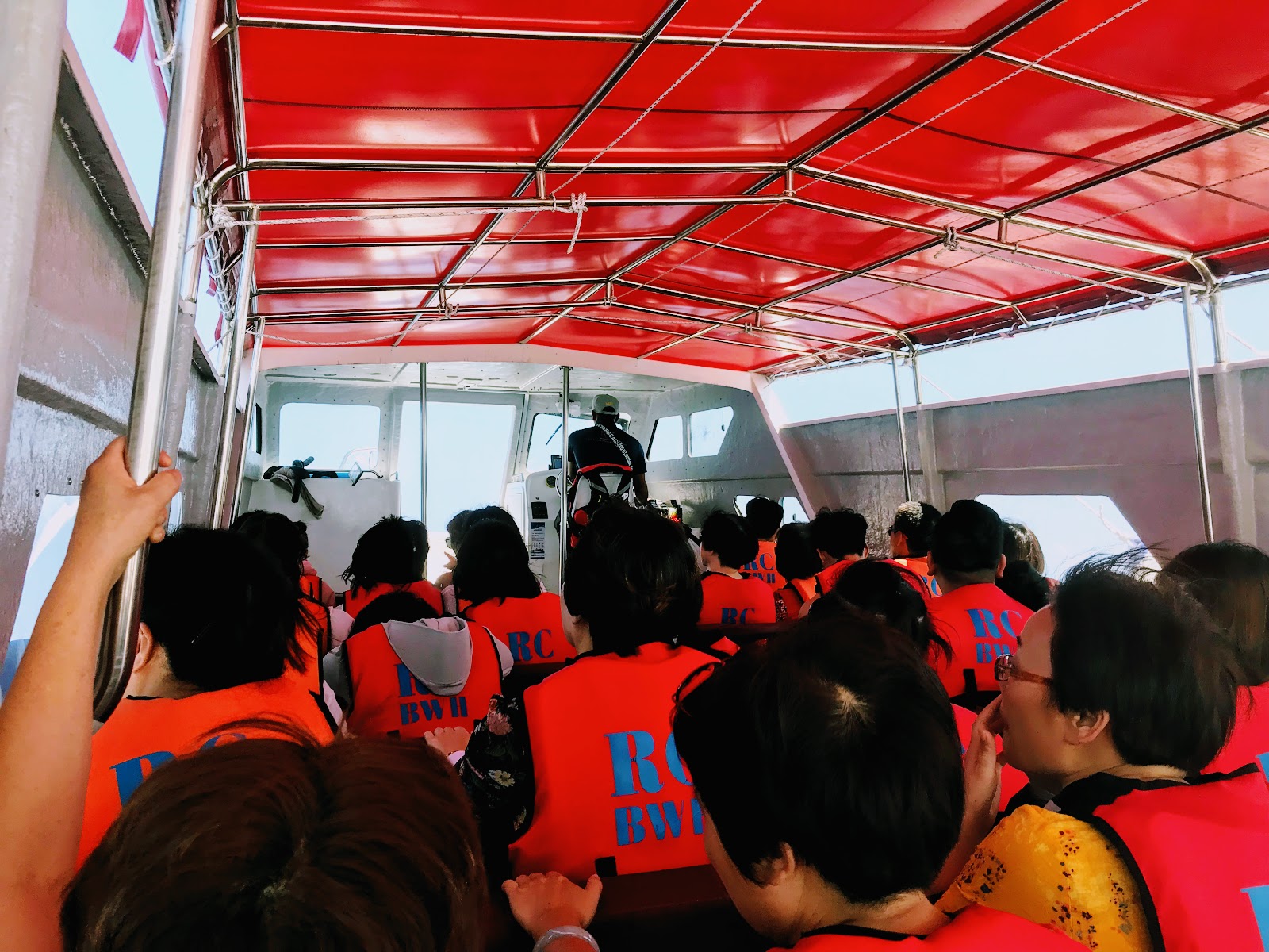 拍照之後,再上船前往島中心,放下隨身物品占桌位、換裝,