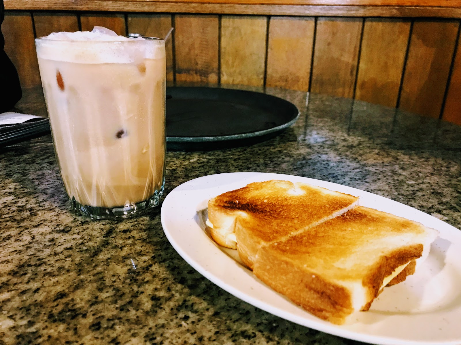 | 《富源茶餐廳》 拉奶茶 / 冷牛油咖椰烘白麵包 (烤過得比較好吃) |