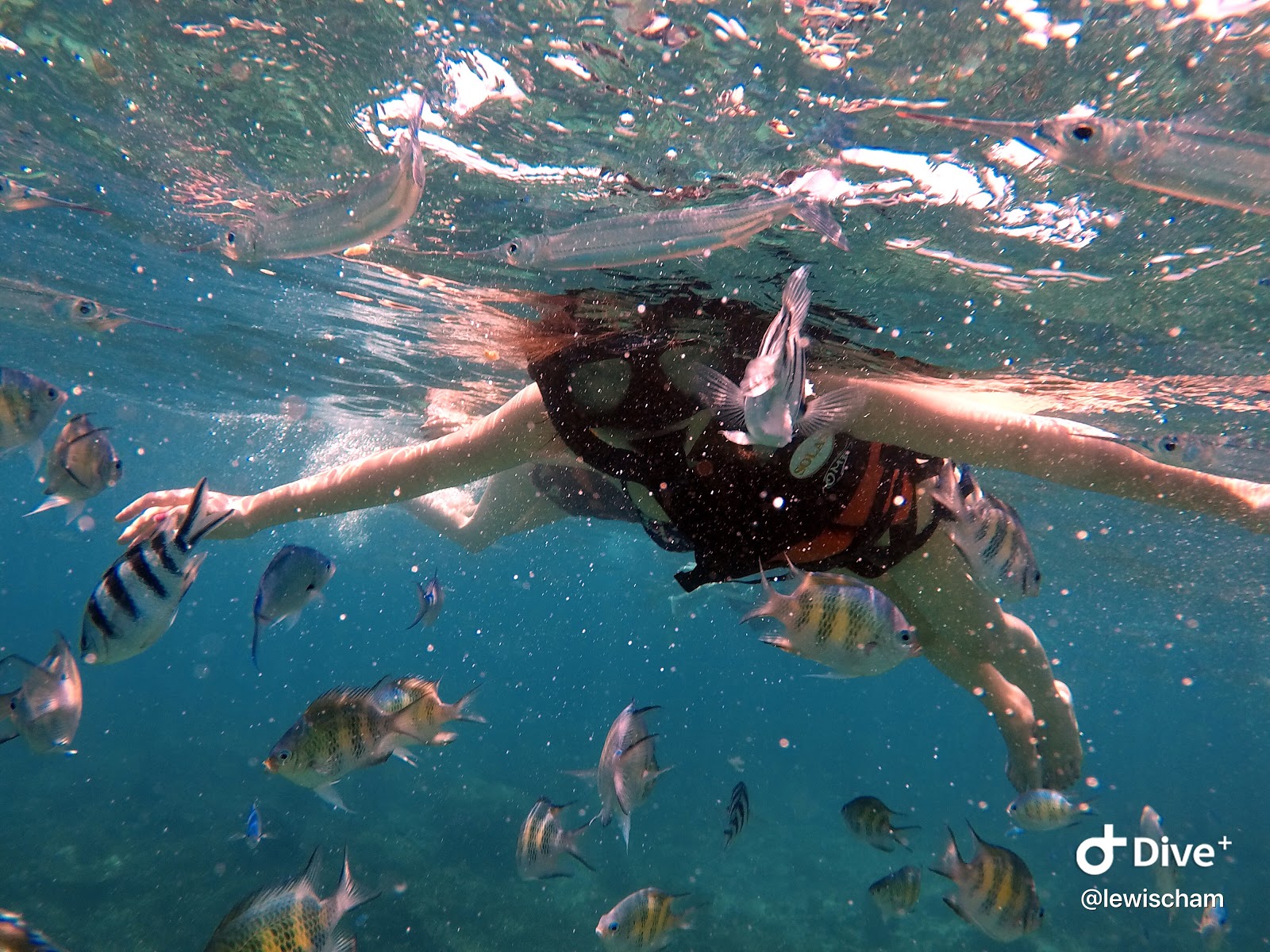 | 導遊在前面狂灑麵包屑吸引魚群 好漂亮❤ |
